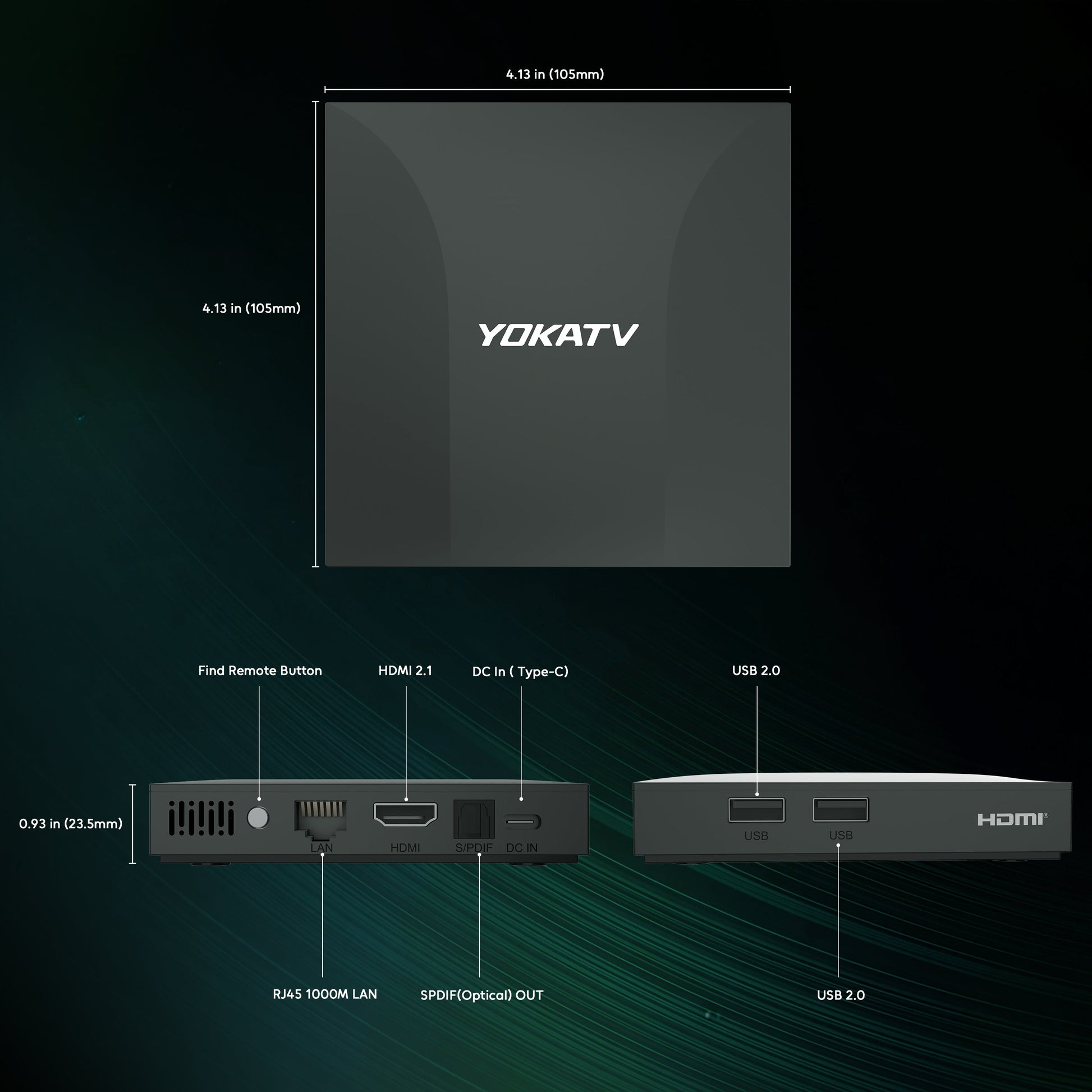 - Software: Android 14 (AOSP), Google Play Store & YOKA App Store, YOKATV Online 2 Player, OTA-Updates